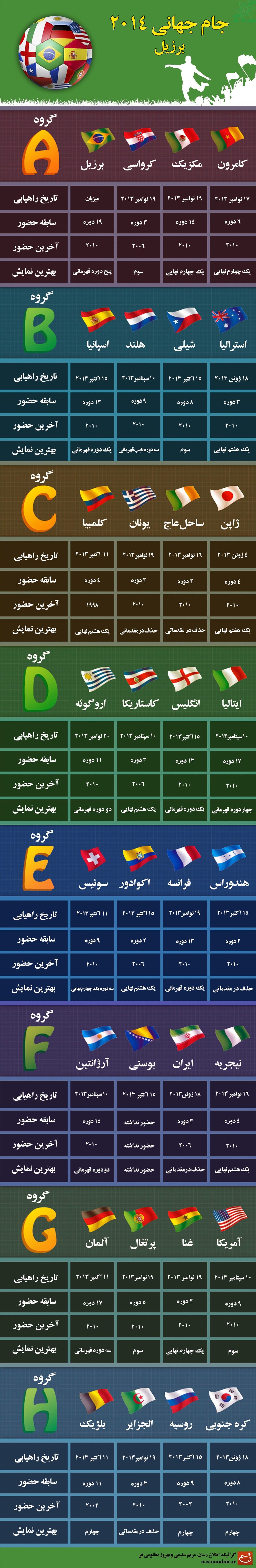 برزیل که 12 ژوئن دیدار افتتاحیه رقابتهای جام جهانی را در مقابل کرواسی برگزار خواهد کرد با تیم های کامرون و مکزیک همگروه است.